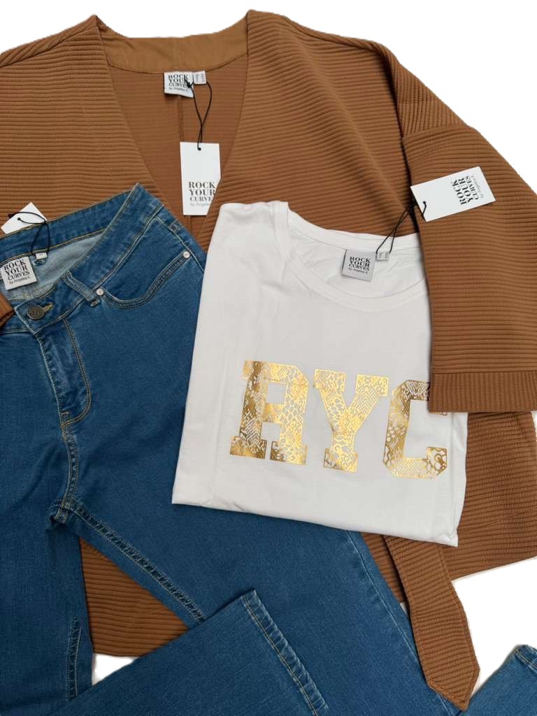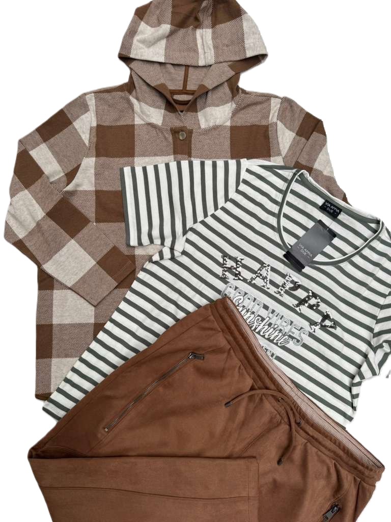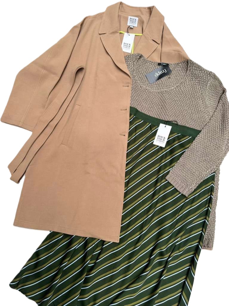 The collection includes a versatile mix of women’s apparel from well-known brands such as Rock Your Curves by Angelina K, Via APPIA, VIA APPIA DUE, and frapp. From everyday essentials to elegant statement pieces, each item is designed to enhance confidence while offering comfort and wearability.